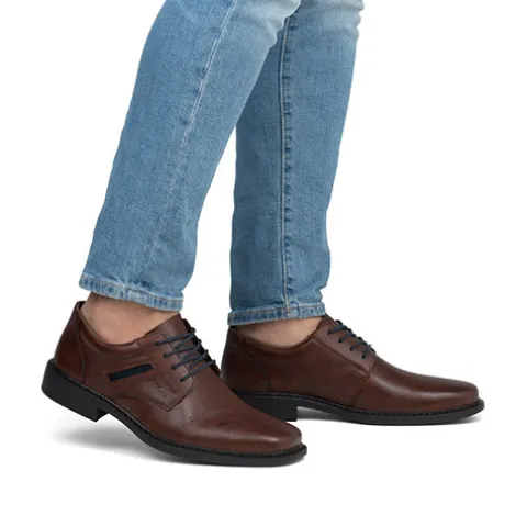 Flot klassisk sko med en overdel af glat skind med en smart detalje på ydersiden. Skoen lukkes med snørebånd, og åbningen er polstret for øget komfort. Den polstrede indersål er komfortabel, og med vidde H er der god plads til den bredere fod. Den fleksible ydersål er stødabsorberende med et fint fodfæste. Her har du en herresko i et tidløst design med maksimal stil og komfort, perfekt til kontoret, festlige anledninger eller hverdagsbrug.