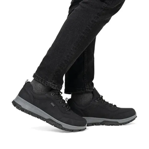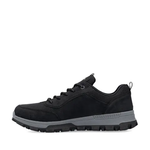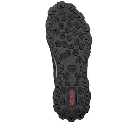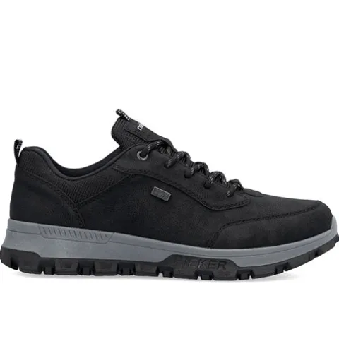 Praktisk og komfortabel sko med en overdel af syntet og tekstil. Skoen lukkes med snørebånd, og trækfane på både pløs og hæl gør det nemmere at træde i skoen. Åbningen er polstret for øget komfort og støtte, og den ekstra komfortbredde om forfoden giver en optimal pasform. Skoen er Walk Protected med den vandafvisende, åndbare RiekerTEX-membran, som holder fødderne komfortable, imens den polstrede, udtagelige MemoCup-indersål giver en dynamisk rullende effekt. Skoen er fleksibel og stødabsorberende, og den lette og kraftige LightTR-ydersål med et gribende mønster giver et godt greb på forskellige overflader.