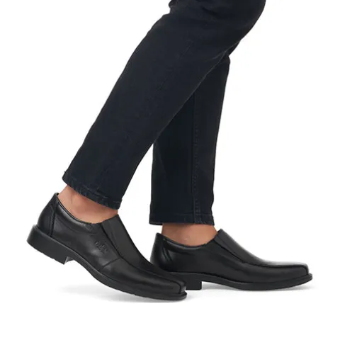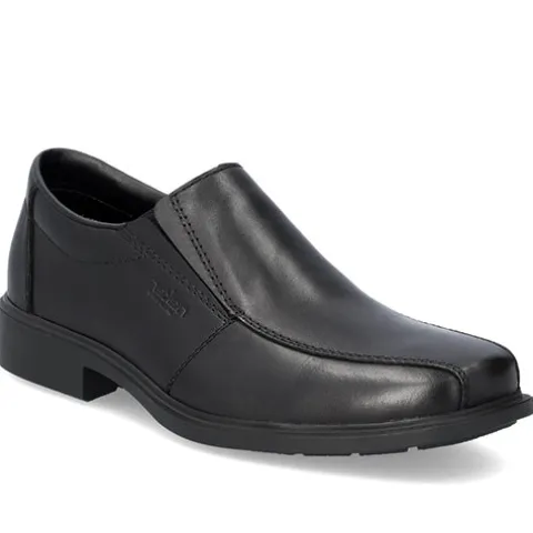 Superflot herresko med en overdel af glat skind og en elastikkile på begge sider af åbningen, så det er nemt at træde i skoen. Åbningskanten er let polstret for øget komfort, og med ekstra vidde er der endnu mere komfort til den bredere fod, da skoen er mere rummelig omkring forfoden. Antistress-indersålen er polstret og komfortabel, og ydersålens mønstrer giver et fint fodfæste.
