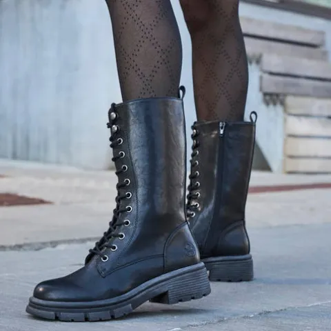 Smart støvle med medium længde skaft. Overdelen er af imiteret glat skind, og støvlen justeres med snørebånd og lukkes med en lynlås på indersiden af benet, imens en trækfane bagpå gør det nemt at træde i støvlen. Indvendig har støvlen et blødt, let fleecefoer. Indersålen er komfortabel, og den kraftige ydersål er stødabsorberende med et godt fodfæste.