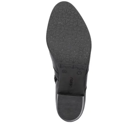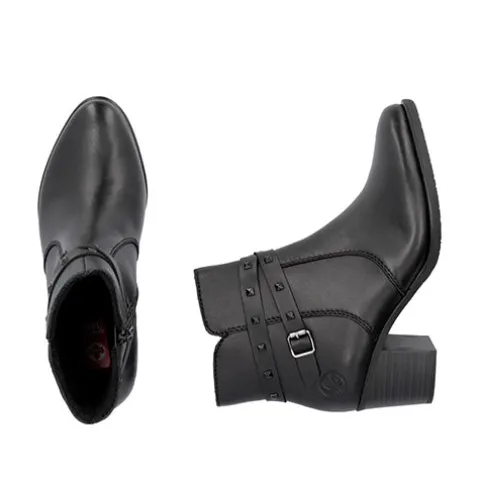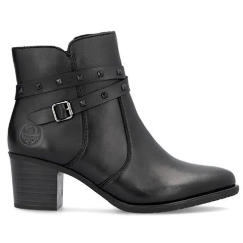 Let og fleksibel støvle med en overdel af glat skind, dekoreret med en rem om anklen med diskrete nitter og et pyntespænde. Støvlen lukkes med en lynlås på indersiden af anklen, og med komfortvidde er der ekstra plads om forfoden. Indvendigt er støvlen udstyret med et let fleecefoer samt en foret Antistress-sål, imens gummiydersålen er stødabsorberende med et fint vejgreb. Støvlen har et feminint look med den 6,5 cm høje blokhæl.