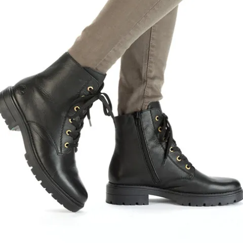 Lækker og let ankelstøvle med en overdel af glat skind. Støvlen justeres med snørebånd og lukkes med en lynlås på indersiden af anklen. Støvlen har komfortvidde med lidt mere rummelighed om forfoden og tæerne, og et let fleecefoer holder dine fødder lune. Indersålen er komfortabel, og den kraftigt mønstrede gummiydersål er fleksibel og stødabsorberende med et godt vejgreb.
