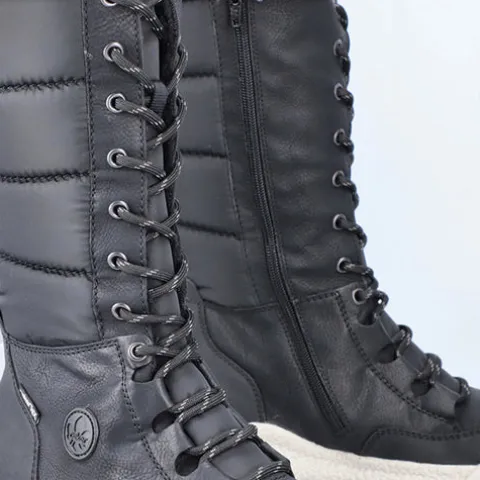 Dejlig vinterstøvle med en overdel af åndbart tekstil og slidstærke syntetdetaljer, dekoreret med en kant af faux pels på kanten af åbningen. Støvlen justeres med snørebånd og lukkes med lynlås på indersiden af det lange skaft. Med den vandafvisende RiekerTEX-membran holdes dine fødder lune og tørre. Indersålen er komfortabel, og den kraftige ydersål giver et godt fodfæste.