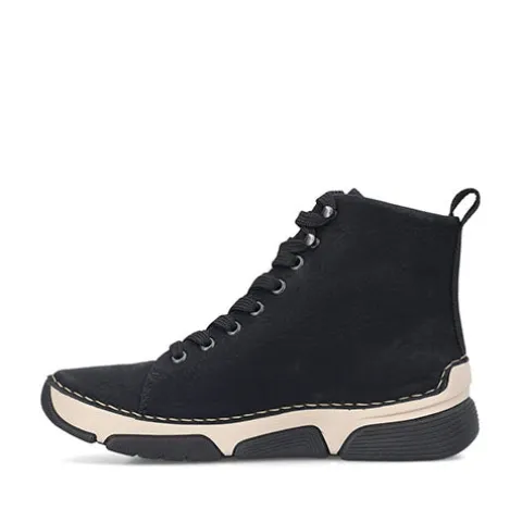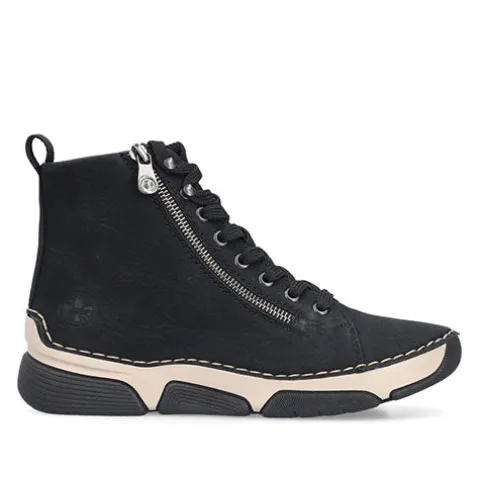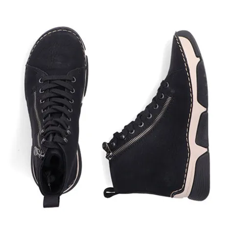 Dejlig ankelstøvle med en overdel af syntet. Støvlen justeres med snørebånd og lukkes med en lynlås på ydersiden af foden, imens en trækfane bagpå gør det nemt at træde i støvlen. Indvendig har støvlen et blødt, let fleecefoer, og indersålen er komfortabel. Den flotte, beige mellemsål med en beige randstikning giver støvlen et sporty udtryk, og den fleksible ydersål er stødabsorberende med et godt fodfæste.