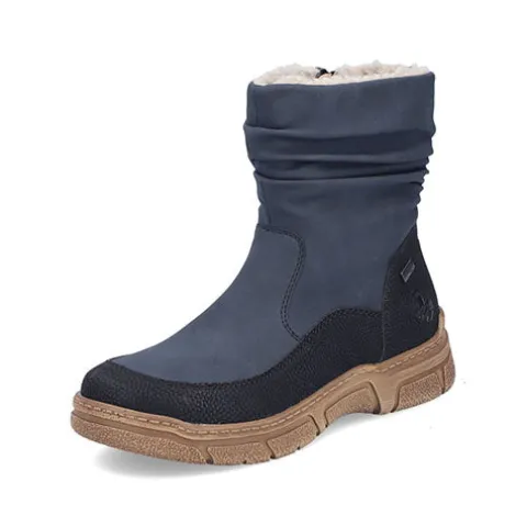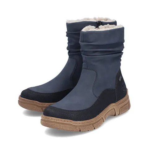 Dejlig vinterstøvle med et moderne rynket look. Overdelen er af syntet foret med et varmt foer helt ud i tåområdet, og sammen med en kraftigt vandafvisende RiekerTEX-membran holdes fødderne varme og tørre. Støvlen lukkes med en lynlås på indersiden af anklen. Med vidde H er der god plads til den bredere fod. Den udtagelige indersål er polstret, støddæmpende og komfortabel, og ydersålen er stødabsorberende med et godt fodfæste.