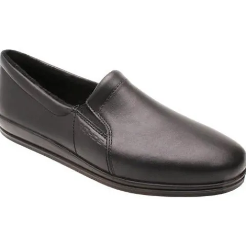 Komfortabel hjemmesko med elastik i siderne. Overdel i skind og indvendig er der et lunt tekstilfoer.
