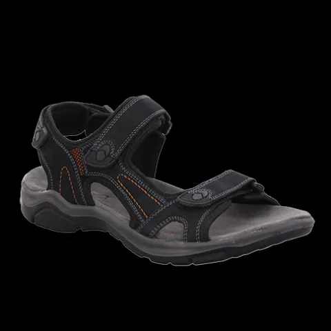 Lækker sandal med en overdel af nubuck på blødt tekstil. Sandalen lukkes med tre velcroremme (forfod, vrist og hæl) for optimal tilpasning til foden, og enden af hver velcrorem er gummibelagt for et bedre greb. Den polstrede dæksål er blød, støddæmpende og komfortabel, og den fleksible ydersål er stødabsorberende med et godt fodfæste.