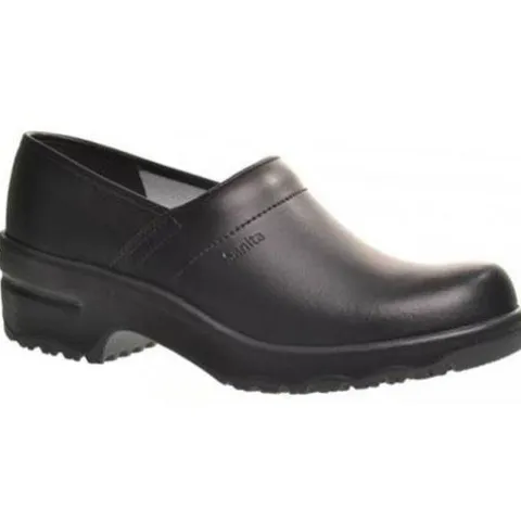 Træsko med hælkappe fra Sanita, hvor sålen er lavet med ekstra godt fodfæste. Overdelen er lavet i kraftig skind.