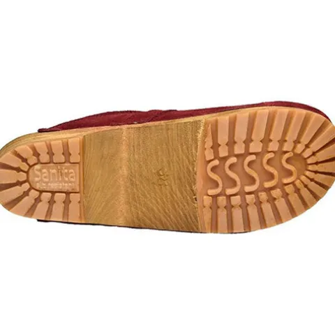 En flot version af en klassiker: Wood – Lissy Open træsko med en mellemsål af ægte antibakterielt lindetræ. Overdelen er af ruskind dekoreret med en rem med metalspænde, og indvendig er træskoen foret med uldfilt, imens hælen er beklædt med ruskind. Ydersålen er af slidstærk naturgummi.