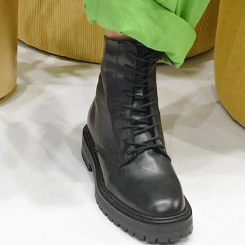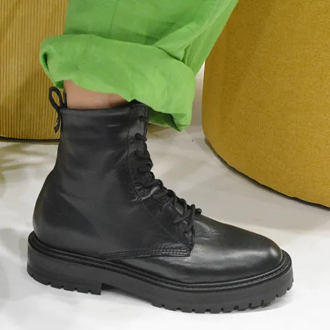 Flot Cale Lace støvle med en overdel af blødt glat skind. Støvlen justeres med snørebånd og lukkes med en lynlås på indersiden af anklen, og en trækfane bagpå gør det nemt at træde i støvlen. Indersålen er beklædt med skind, og den kraftige ydersål er stødabsorberende med et godt vejgreb. Støvlen har en behagelig pasform og kan bruges til bukser og kjoler.