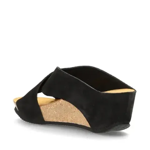 Smart Chill slip-in sandal fra Shoedesign Copenhagen. Både overdelen og dæksålen er af ruskind, så her har du høj komfort hele dagen. Overdelen er en praktisk krydsrem over forfoden med to brede remme, der går ned over mellemsålen. Dæksålen er formet til at have en fodskål, så foden holdes på plads. Med en hælhøjde på 7 cm samt et lille plateau under forfoden er sandalen behagelig at gå i.