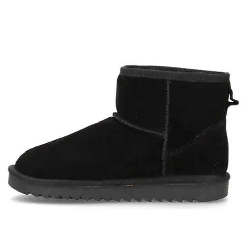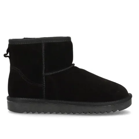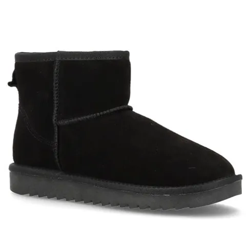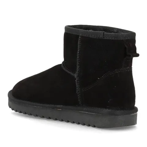 Lækker Elina bamsestøvle med en overdel af ruskind dekoreret med kraftige syninger. Støvlen er en slip on-model, og en trækfane bagpå gør det nemt at træde i støvlen. Indvendig har støvlen et blødt, varmt foer, så du ikke fryser om fødderne, og den fleksible plateaugummisål er stødabsorberende med et godt vejgreb. Kan også bruges som hjemmesko. Produceret i Europa.