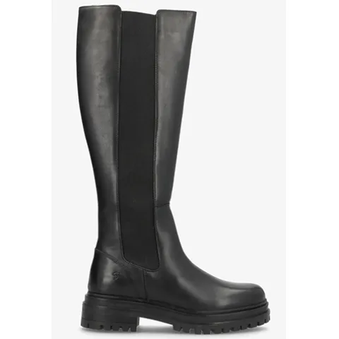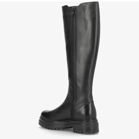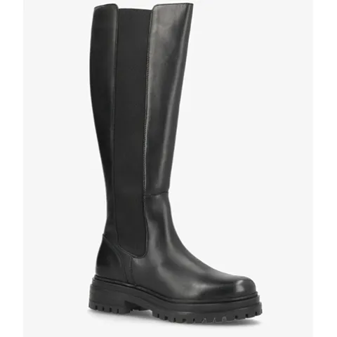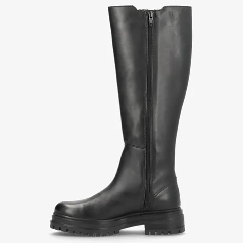 Flot Hasta La Vista støvle med langt skaft. Overdelen er af glat skind med et langt elastikpanel på ydersiden af benet for optimal tilpasning. Lukkes med en lynlås på indersiden af benet. Indvendig er støvlen foret med tekstil, og den skindbeklædte indersål er komfortabel. Den kraftige gummiydersål er stødabsorberende med et godt fodfæste.