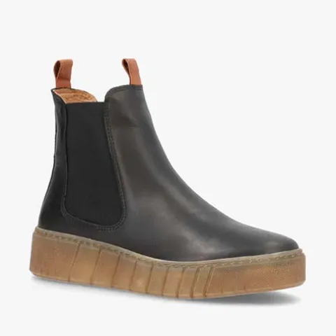 Lækker Mooved Chelsea-støvle med en overdel af særligt behandlet glat naturlæder med elastikpaneler på siderne og karamelfarvede trækfaner både for og bag. Den skindbeklædte indersål er komfortabel, og den kraftige gummiydersål med det markante look er stødabsorberende med et godt fodfæste. Med det håndlavede finish er Mooved-støvlen et stilsikkert valg og den perfekte følgesvend i overgangssæsonerne. Farve- og teksturforskelle er naturlige og understreger materialets ægthed.
