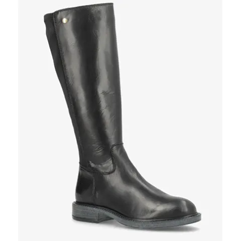 Klassisk lang Vancouver støvle med en overdel af glat skind på forsiden og en strækbar syntetdel på bagsiden, så støvlen kan passe til forskellige størrelser lægge. Støvlen lukkes med en lynlås på indersiden af benet. Indersålen er komfortabel, og den fleksible gummiydersål er stødabsorberende med et godt fodfæste.