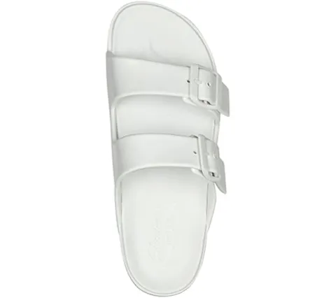 Virkelig blød Foamies Arch Fit Cali Breeze 2.0 slippers-sandal med to remme med spænder, der kan justeres. Dæksålen har tågreb og er af Luxe Foam, som føles superblødt og behageligt, og Arch Fit giver en god svangstøtte. Dæksålen har en prominent fodskål ved hælen, så foden holdes på plads. Sandalen kan maskinvaskes i koldt vand. Er stor i størrelsen.