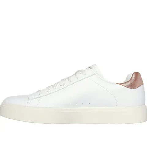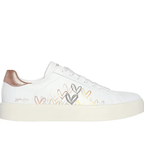 Den kendte kunstner James Goldcrown bringer sine ikoniske Lovewall-hjertedesigns til Skechers i et inspirerende samarbejde, og resultatet er en superflot Eden LX – Gleaming Hearts sko med et flot hjerteprint på ydersiden. Denne model har guld-, kobber- og sølvfarvede hjerter på en hvid bund af duralæder, og et af hjerterne er med glitter, og to af hjerterne er broderede. Flotte rødguldsfarvede detaljer pryder hælen og pløsen. Skoen lukkes med snørebånd, og åbningen er polstret for øget komfort. Den støddæmpende Air-Cooled Memory Foam-indersål former sig efter foden og aflaster dine fødder, så du er sikret komfort igennem hele dagen. Gummiydersålen er stødabsorberende med et godt fodfæste.