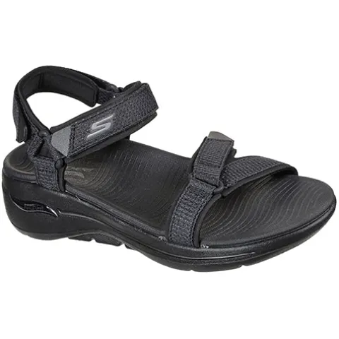 Dejlig og komfortabel Go Walk Arch Fit – Cruise Around sandal med en overdel af tekstil og syntet. Sandalen lukkes med tre velcroremme (forfod, vrist og hæl). Den bløde og komfortable Arch Fit-indersål har svangstøtte, er meget stødabsorberende og former sig efter foden, imens Skechers Contoured Heel-teknologi sørger for, at hælskålen stabiliserer og holder foden på plads i sandalen samt gør sandalen behagelig at have på hele dagen. Den fleksible og lette ydersål giver et godt greb og er stødabsorberende med Ultra Go-støddæmpning. Kan maskinvaskes ved maks. 30 grader.
