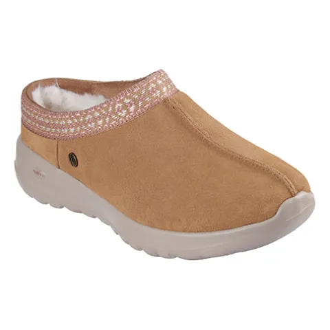 Lækker og superhyggelig On-The-Go Joy – Get Cozy sko, som sagtens kan bruges som hjemmesko. Overdelen er af ruskind foret med et blødt, lunt foer af syntetpels, og åbningen er kantet med et smukt pyntebånd. Skoen har en Air-Cooled Goga Mat-indersål med høj rebound-polstring, en let og meget responsiv 5GEN polstret mellemsål samt Skechers Soft Stride polstret skum for ekstra komfort. Den fleksible ydersål er stødabsorberende med et godt fodfæste.