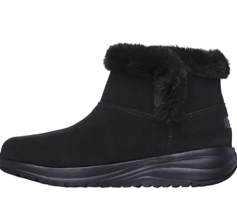 Denne enkle og komfortable On-The-Go Stellar Cozy Step ankelstøvle er en vandtæt vinterstøvle, der holder dine fødder komfortable og beskyttede mod kulden ved at kombinere et avanceret design med funktionalitet. Overdelen er blødt ruskind med et varmt foer, dekoreret med en kant af kunstpels i åbningen. Elastik på siderne af anklen gør støvlen mere fleksibel, og du nyder en almindelig rummelighed med støvlens Classic Fit-vidde. Den komfortable og åndbare indersål er en Skechers Air-Cooled Goga Mat-indersål, der med høj-rebound-dæmpning giver en fornemmelse af at gå på en yogamåtte hele dagen. Den lette ULTRA GO-mellemsål er stødabsorberende og responsiv, og den fleksible ydersål giver med sine gummibelægninger på hæl og tå et godt fodfæste.