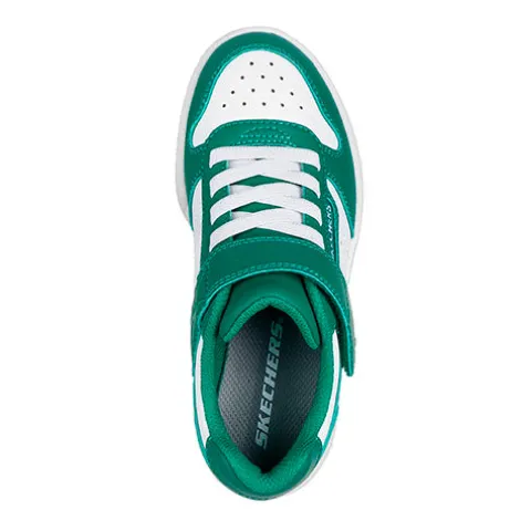 Superlækker Quick Street sko med en overdel af duralæder i et flot miks af grøn og hvid. Skoen lukkes med en velcrorem over vristen, imens det ikkejusterbare elastiksnørebånd sørger for løbende tilpasning til foden gennem dagen. Indersålen er komfortabel, og den stødabsorberende ydersål giver et godt fodfæste. Kan maskinvaskes ved maks. 30˚ (husk vaskepose).