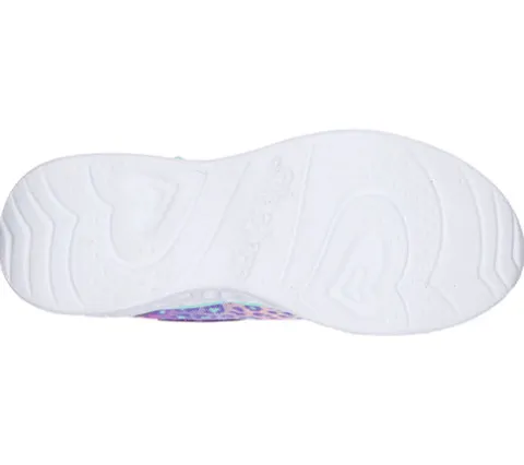 Skechers S-Lights Heart Lights – Love Match er en super sød sko med lysende hjerter i sålen. Overdelen er af farverigt leopardprint. I sålen er der udskårne hjerter, som lyser i forskellige farver når man går. Skoen er nem at tage på med