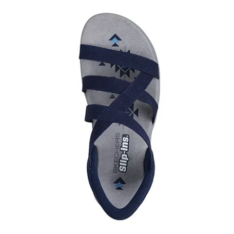 Dejlig Slip-ins Reggae Slim – Stretch Flex sandal med en overdel af blødt stræktekstil og syntet, og med Stretch Fit tilpasser sandalen sig foden som en strømpe. Med Slip-ins får du Skechers’ håndfrie teknologi, hvor du nemt kan træde i sandalen uden at bruge dine hænder eller at bukke dig, og du får en fast hælkappe med en specialdesignet hælpude, der former sig til din hæl og dens naturlige kurve. Den konturerede og polstrede komfortfodseng er støddæmpende og komfortabel, imens den fleksible ydersål er stødabsorberende med et godt vejgreb. Kan maskinvaskes ved maks. 30 grader. Er fremstillet af 100 % veganske materialer.