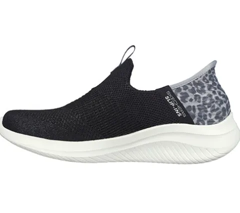 Slip-Ins Ultra Flex 3.0 Slip-Ins – Natural Step sko har Skechers nytænkende teknologi, hvor du nemt og bekvemt kan træde i skoen uden at bukke dig eller bruge dine hænder. Om hælen får du øget komfort med den indvendigt siddende specialdesignede pude, som former sig til din hæl og dens naturlige kurve. Den åndbare overdel er af tekstil med ikkejusterbare pynteelastiksnører. Air-Cooled Memory Foam-indersålen former sig efter din fod og giver en fin støddæmpning, en god støtte og komfort dagen lang, og med Stretch Fit tilpasser skoen sig din fod som strømper. Ydersålen er slidstærk og fleksibel og giver en god komfort. Kan maskinvaskes ved max 30 grader. 100 % vegansk.