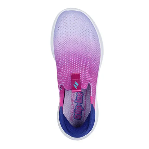 Flot og farverig Slip-ins Ultra Flex 3.0 – Color Boost sko kombinerer praktisk anvendelighed med et friskt og moderne udseende til skoledagen. Overdelen er af åndbart striktekstil med glimmereffekt og en trækfane på pløsen, og med Stretch Fit-designet tilpasser skoen sig til foden og føles som en sok. Med Slip-ins-teknologien får du en stabil hælkappe og skræddersyet polstring, der former sig efter din hæl og sikrer enestående stabilitet, og du behøver hverken bukke dig eller bruge dine hænder for at få skoen af og på – en perfekt løsning til børn, der gerne vil hurtigt ud og have det sjovt med vennerne. Den komfortable Air-Cooled Memory Foam-indersål giver støtte og stødabsorption, og den fleksible ydersål giver et fast vejgreb og efterlader ikke mærker på gulvet. Kan maskinvaskes ved maks. 30 grader.
