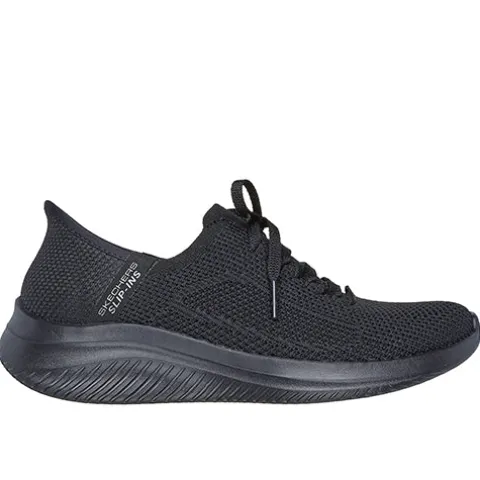Slip-Ins Ultra Flex 3.0 – Elevated Motion sko har Skechers Slip-ins-teknologi, hvor du nemt og bekvemt kan træde i skoen uden at bukke dig eller bruge dine hænder. Om hælen får du øget komfort med den indvendigt siddende specialdesignede pude, som former sig til din hæl og dens naturlige kurve. Den åndbare overdel er af tekstil med et ikkejusterbart pyntesnørebånd. Air-Cooled Memory Foam-indersålen former sig efter din fod og giver en fin støddæmpning, en god støtte og komfort dagen lang, og med Stretch Fit tilpasser skoen sig din fod som strømper. Ydersålen er slidstærk, fleksibel og stødabsorberende med et godt fodfæste og en god komfort. Kan maskinvaskes ved max 30 grader. 100 % vegansk. Fås i halve størrelser.