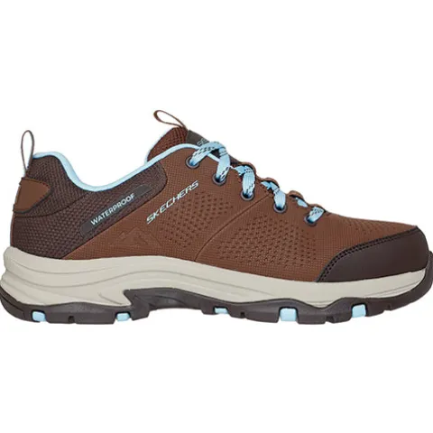 Vandtæt Trego – Trail Destiny sko med en overdel af syntet og vævet tekstil i et 100 % vandtæt design med forseglede sømme. Skoen lukkes med snørebånd, og trækfaner på pløs og hæl gør det nemt at træde i skoen. Åbningen er polstret for øget komfort, og Relaxed Fit giver komfortvidde om forfoden. Den åndbare Air-Cooled Memory Foam®-indersål giver trykaflastning og komfort, EVA-mellemsålen er stødabsorberende, og den godt mønstrede gummiydersål giver et godt vejgreb.