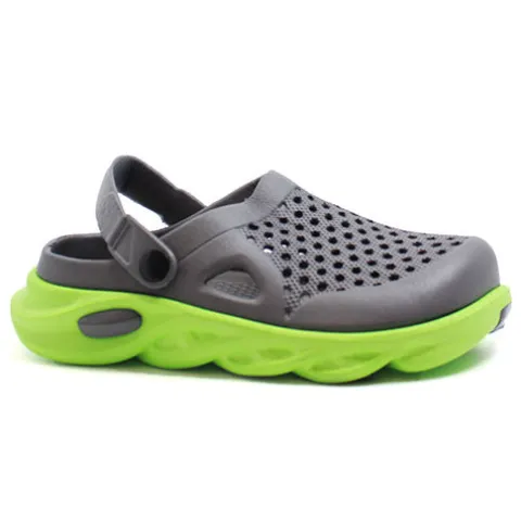 Sød, blød og praktisk sandal med lukket tå og masser af lufthuller, så foden kan ånde, og vand kan sive ud. En drejelig hælstrop sørger for at holde foden på plads i sandalen, men kan også drejes op på vristen for en slippers-model. Sandalen er af EVA, og både inder- og ydersål er stødabsorberende. Sandalen giver et fint fodfæste og er nem at rengøre.