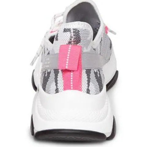 Sporty sneaker fra Steve Madden med overdel i tekstil og neopren. Den pink neonfarve ved snøre og bagpå, giver skoen et frisk udtryk. Skoen er super let, trods de kraftige såler.