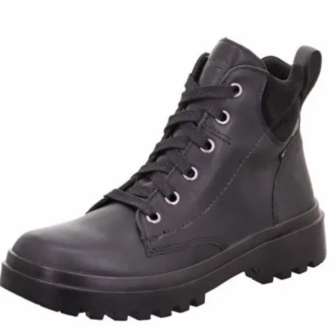 Rigtig smart Abby ankelstøvle fra Superfit af glat skind, ruskind og tekstil. Støvlen justeres med snørebånd og lukkes med lynlås på indersiden af anklen. Den vandtætte og åndbare Gore-Tex®-membran samt et tyndt fleecefoer holder fødderne lune og tørre. Indersålen kan tages ud, og den fleksible, grove ydersål giver et godt fodfæste.
