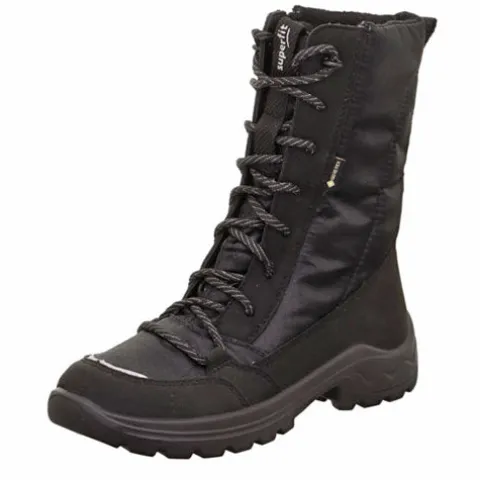 Superflot Aurora vinterstøvle med en overdel af tekstil med en refleksdetalje på snuden. Støvlen justeres med snørebånd og lukkes med en lynlås på indersiden af benet, og en trækfane bagpå gør det nemt at træde i støvlen. På indersiden af skaftet har støvlen et blødt, let fleecefoer, imens resten af støvlen har et varmt foer, og med en vandtæt og åndbar Gore-Tex-membran holdes fødderne tørre og varme i vintervejret. Den forede indersål kan tages ud, og den lette og stødabsorberende ydersål giver et godt fodfæste.