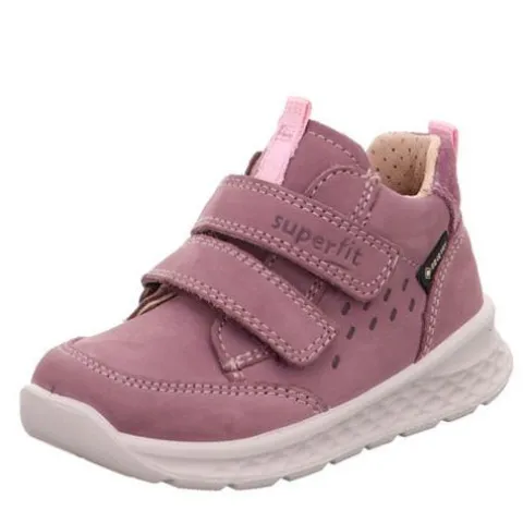 Superkomfortabel Breeze børnesko med en overdel af blød nubuck og på hælen ruskind. Skoen lukkes med to velcroremme og har trækfane på både hæl og pløs. Skoen er åndbar med tekstilfoer, og den udtagelige indersål er beklædt med skind, som giver et godt fodklima. Med en åndbar og vandtæt Gore-Tex®-membran holdes fødderne tørre. Skoen har en god pasform, der støtter barnets fod, og den lette sportsydersål er fleksibel og stødabsorberende med et godt fodfæste.