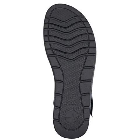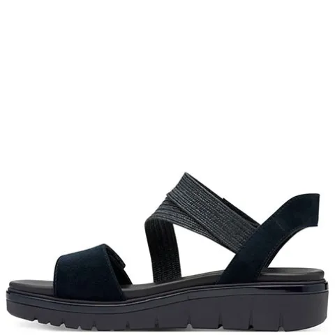 Lækker og komfortabel PureRelax sandal med en overdel af ruskind og tekstil. Sandalen lukkes med to velcroremme (forfod og vrist), og du får ekstra højde med den 4,5 cm høje hæl, som føles som blot 1,5 cm pga. den ca. 3 cm høje plateausål under forfoden. Dine fødder forkæles af Tamaris PureRelax med ekstrabløde materialer og den unikke RELAX FIT-teknologi, som lader sandalen tilpasse sig perfekt til foden med en smule mere plads om forfoden. Komforten øges yderligere af den polstrede og skindbeklædte indersål, som i øvrigt kan tages ud. Den kraftige og fleksible ydersål er stødabsorberende og giver et godt fodfæste.