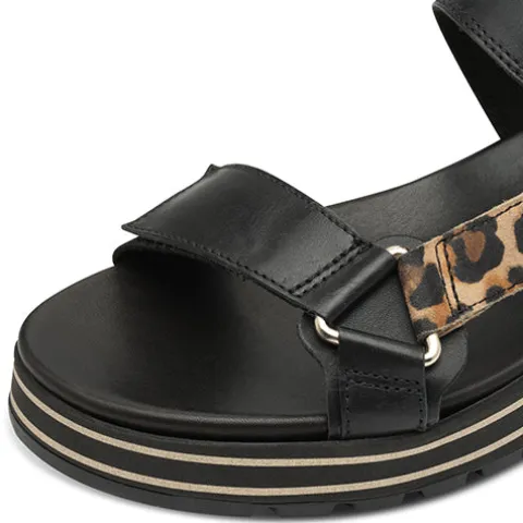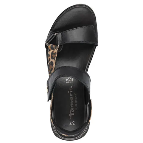 Lækker PureRelax sandal med en overdel af glat skind, tekstil og syntet. Sandalen lukkes med to velcroremme over forfod og vrist, og hælremmen har en blød polstring og er fæstnet med elastik for optimal fleksibilitet og tilpasning til foden. Sandalen har med Relax Fit en lidt bredere forfod, og den udtagelige dæksål beklædt med glat skind er polstret, komfortabel og støddæmpende. Den fleksible ydersål er stødabsorberende med et godt fodfæste.