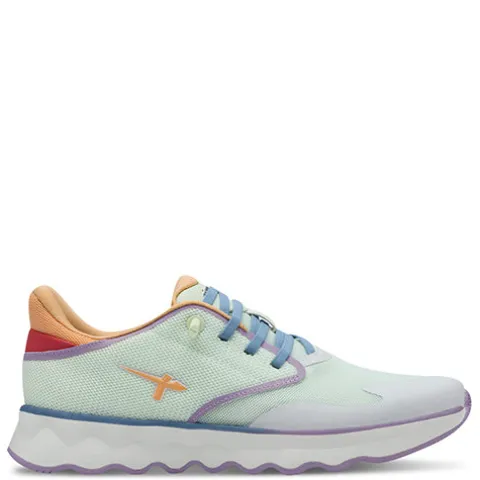 Superflot NOWANA sneaker i en iøjnefaldende farvekombination. Overdelen er af åndbart meshtekstil med syntetdetaljer. Skoen er en slip on-model med en elastisk snøre og en polstret hæl, så du nemt kan træde i skoen. Åbningen er polstret for øget komfort, og den udtagelige OrthoLite®-indersål er komfortabel. Den stødabsorberende ydersål har et spændende bølgedesign og giver et godt fodfæste. Dans gennem dagen i denne lette sko, som i øvrigt er vegansk.