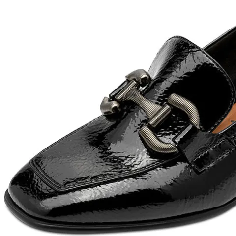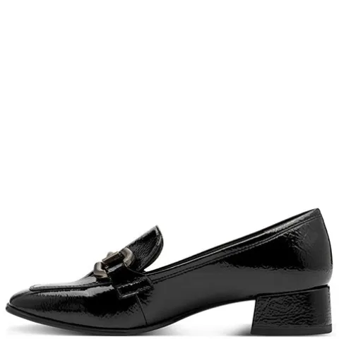 Flot sko i loaferstil med en ca. 4 cm høj blokhæl. Overdelen er af lakeret syntet foret med tekstil, og forfoden er dekoreret med et bidsel i gråt metallook. Den polstrede Touch-it-indersål er beklædt med skind, og den fleksible ydersål har AntiSlide-sål på hælen.