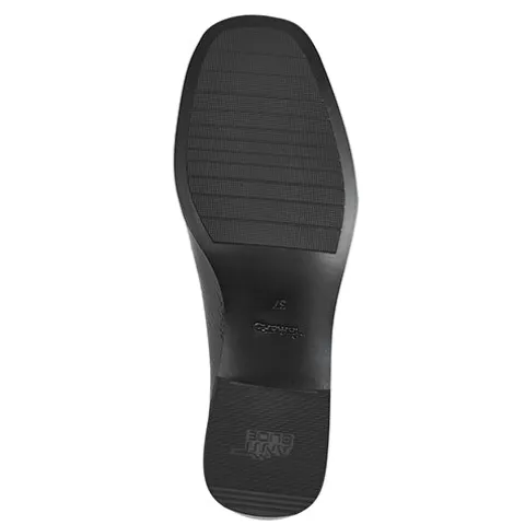 Flot sko i loaferstil med 5 cm høj blokhæl og tre remme over forfoden. Overdelen er af lakeret syntet, og elastikkiler ved åbningen giver skoen mulighed for at tilpasse sig foden i løbet af dagen. Indvendigt er skoen polstret i hælen for øget komfort, og den polstrede Touch it-indersål er beklædt med skind. Ydersålen har Anti Slide.