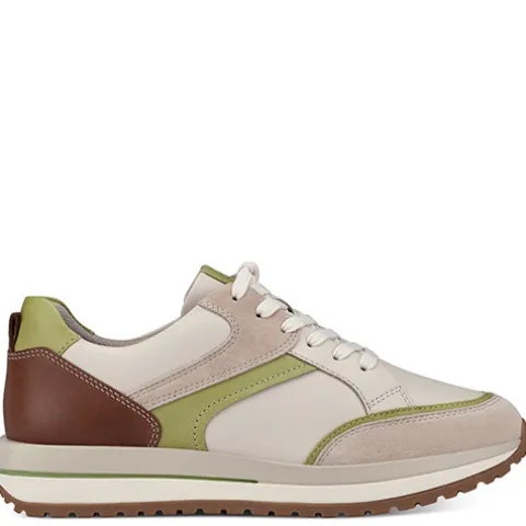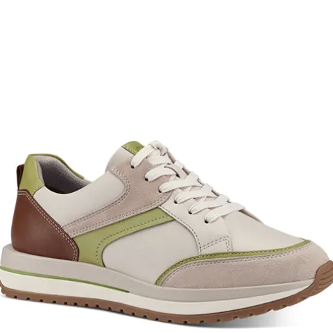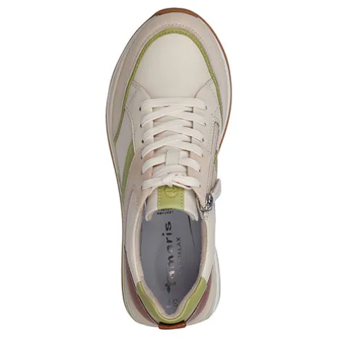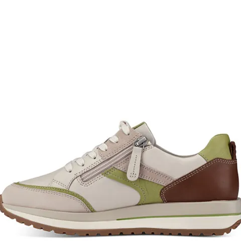 Denne Pure Relax Ivory sneaker fra Tamaris er feminin, smart og sporty med mange spændende detaljer. Skoens overdel er skind og nubuck, og den bløde Relax Fit-indersål, som har en smule pelotte og hælpude, er læder. Skoen justeres med snørebånd og lukkes med en praktisk lynlås på indersiden. Foeret er af genanvendte materialer for øget bæredygtighed. Her får du et par moderigtige sneakers med stor komfort.