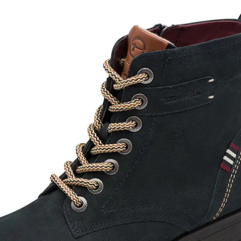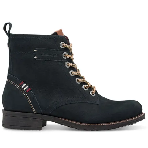 Flot støvle med en overdel af skind og tekstil med smarte detaljer. Støvlen justeres med snørebånd og lukkes med en lynlås på indersiden af anklen, og en trækfane bagpå gør det nemt at træde i støvlen. Indvendig har støvlen et let, lunt fleecefoer, og den komfortable Touch-it-indersål er lavet af et fleksibelt memory foam-materiale, der konstant tilpasser sig foden. Den fleksible gummiydersål er stødabsorberende med et godt fodfæste.