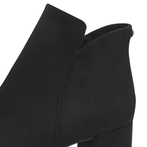 Flot ankelstøvle med blokhæl. Overdelen er af tekstil i nubucklook, og støvlen lukkes med en lynlås på indersiden af anklen. Touch-it-indersålen er blød og komfortabel, ydersålen under forfoden er fleksibel, og den 5 cm høje blokhæl giver et flot, feminint look. Fremstillet af ikkeanimalske materialer.