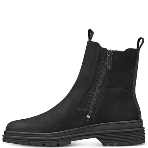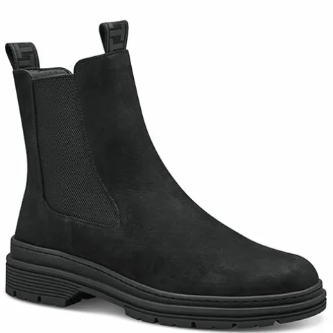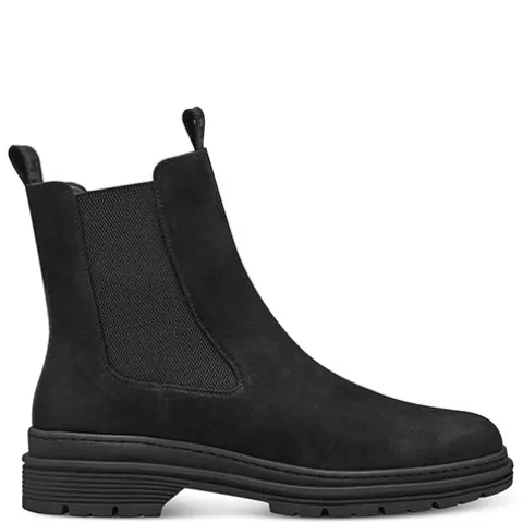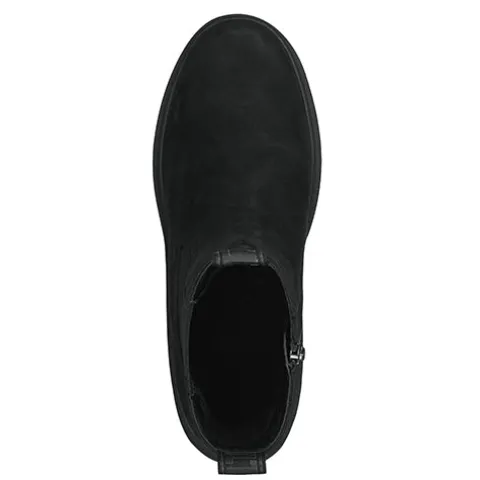Lækker støvle med en overdel af nubuck med et elastikpanel på ydersiden og en lynlås på indersiden af skaftet. Trækfaner for og bag gør det nemt at træde i støvlen. Den komfortable indersål kan tages ud, og ydersålen er stødabsorberende med et godt fodfæste.