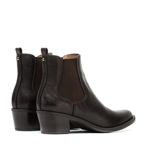 Fin chelsea støvle i western stil fra Unisa. Støvlen har en tilspidset snude og en kraftig hæl. Støvlen er foret med skind.