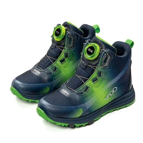 Flot Warren Mid Boa GTX støvle med en overdel af meshtekstil og syntetbelægning på snuden og ved BOA-snøren. Støvlen har mange flotte detaljer, bl.a. reflekser der øger synligheden, og den lukkes med det brugervenlige BOA® Fit System, som sikrer en perfekt tilpasning til foden, imens en trækfane bagpå gør det nemmere at træde i støvlen. Indvendig har støvlen et varmt GTX Cirrus-foer, og med en åndbar og vandtæt Gore-Tex®-membran holdes fødderne tørre og varme. Med VADO Two-Width System har skoen to indersåler, som giver henholdsvis Medium og Wide Fit; fjern den nederste for mere rummelighed eller plads til ortopædiske indlæg. Indersålen er markeret med vokseplads, og den kan vaskes ved 30 grader. Mellemsålen er støddæmpende. Den godt mønstrede ydersål af ægte gummi med VADO X Flex-Zone i det forreste område af sålen sikrer et godt vejgreb og en naturlig gang med en sund, ergonomisk rullende bevægelse ved hvert skridt, perfekt til en sund fodudvikling. Denne støvle mestrer udfordringerne i naturen lige så godt som dem i skolegården.