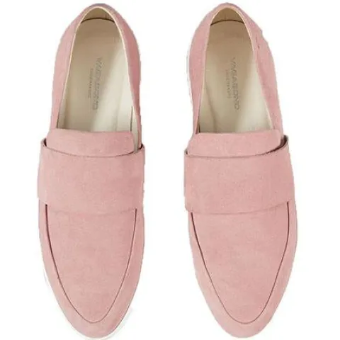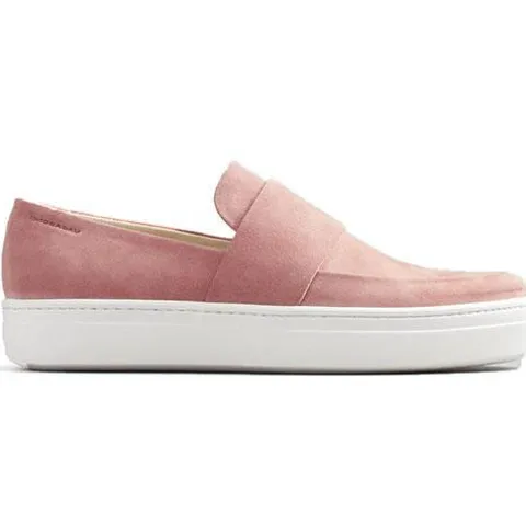 Smart sko fra Vagabond med hvide plateausåler. På skoen er der et smart bredt stykke skind over vristen, som giver skoen et ekstra tvist. Skoen spidser til i snuden.