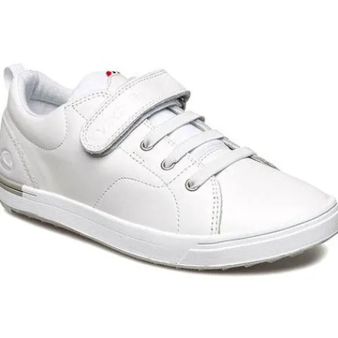 Viking sko i glat skind med velcro og elastiksnøre. Lyse ydersåler i gummi.