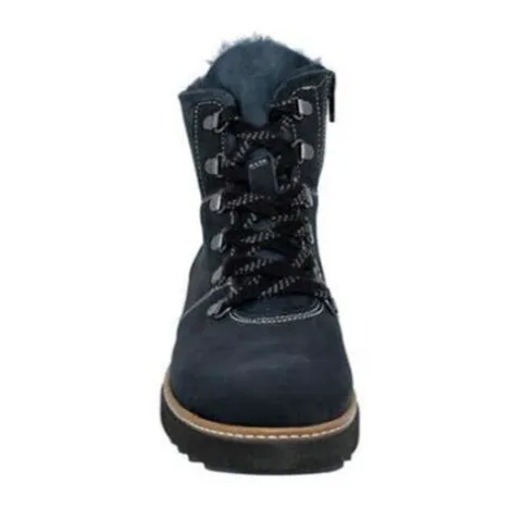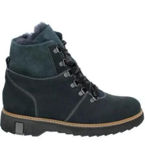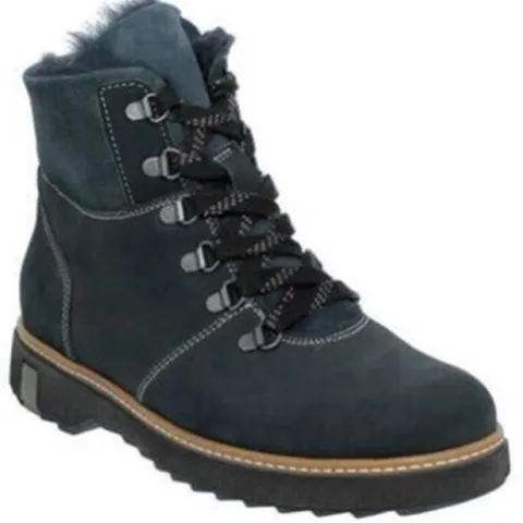 Lækker Hitomi støvle med en overdel af nubuck og ruskind, dekoreret med en smart, brun kontrastdetalje med syning hele vejen rundt mellem overdel og ydersål. Støvlen justeres med snører og lukkes med lynlås på indersiden. Med vidde H er der god plads til den lidt bredere fod, og med et varmt foer holdes dine fødder lune. Den polstrede indersål kan tages ud, og ydersålen er kraftig og fleksibel og giver et fint fodfæste.